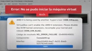 Error VirtualBox en Debian 13: AMD-V is being used by another hypervisor (VERR_SVM_IN_USE)NS_ERROR_FAILURE (0x80004005)