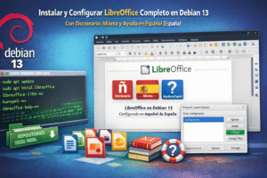 Instalar LibreOffice desde repositorios en Debian 13 en español , diccionarios y ayuda
