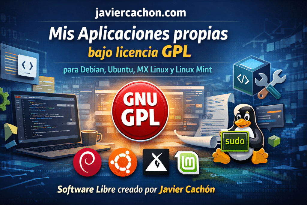 La sección “Apps” de esta web recoge un conjunto de aplicaciones desarrolladas íntegramente por mí y publicadas bajo licencia GPL (GNU General Public License). No se trata de un simple repositorio de utilidades, sino de un catálogo de proyectos propios que responden a una visión clara: software libre, auditable, técnicamente sólido y plenamente compatible con distribuciones basadas en Debian.