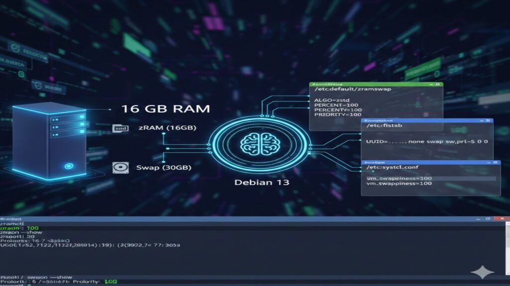 Debian 13 facilita este proceso mediante el paquete zram-tools, que gestiona la creación y destrucción de los dispositivos de bloque de forma automatizada.