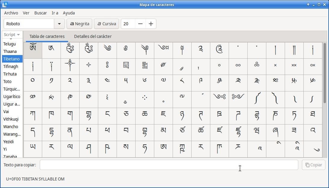Gucharmap es la aplicación “oficial” del entorno GNOME para explorar caracteres Unicode, bloques, glifos, fuentes instaladas, ver código, propiedades, etc. Según la documentación: “allows you to browse through all the available Unicode characters and categories for the installed fonts, and to examine their detailed properties.”