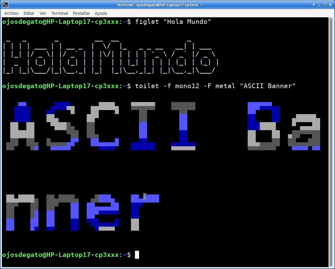 $ figlet "Hola Mundo" $ toilet -f mono12 -F metal "ASCII Banner"