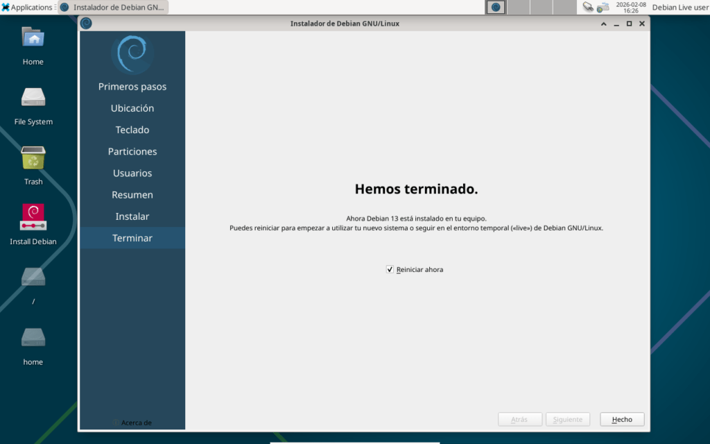 Ya tenemos instalado del sistema, ¡Disfruta de tu Debian….!