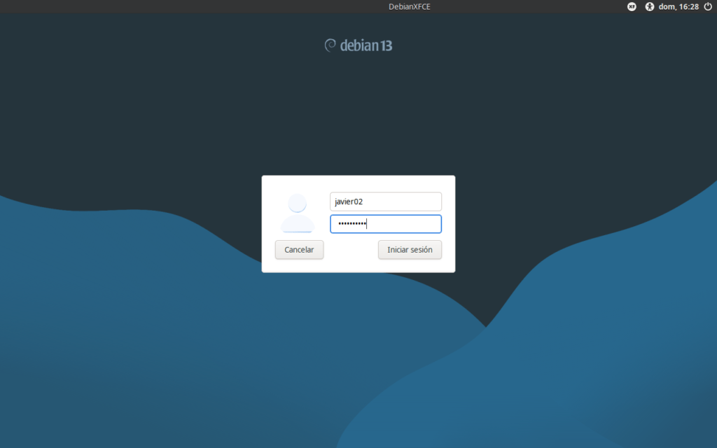 Metemos nuestro usuario y contraseña para acceder al sistema operativo debian con XFCE: