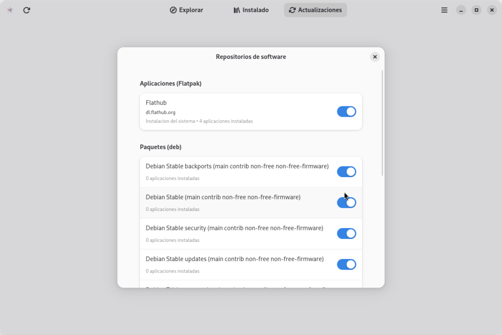 Con esto habilitamos la gestión de paquetes .deb desde repositorios oficiales de Debian.