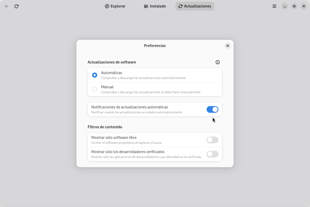 GNOME Software es una aplicación gráfica de gestión de software que actúa como frontend unificado para múltiples sistemas de empaquetado. Aunque se integra de forma nativa en GNOME Shell, su arquitectura modular permite ejecutarla sin problema en otros escritorios como XFCE del Xfce Project siempre que se instalen los complementos adecuados.