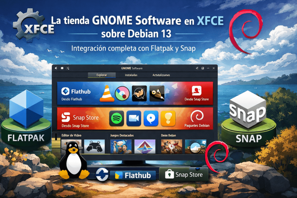 En este artículo técnico, narrado desde la experiencia práctica en Debian 13 con XFCE, documento cómo desplegar GNOME Software, la tienda oficial del ecosistema GNOME desarrollada por el GNOME Project, dotándola de soporte completo para:
